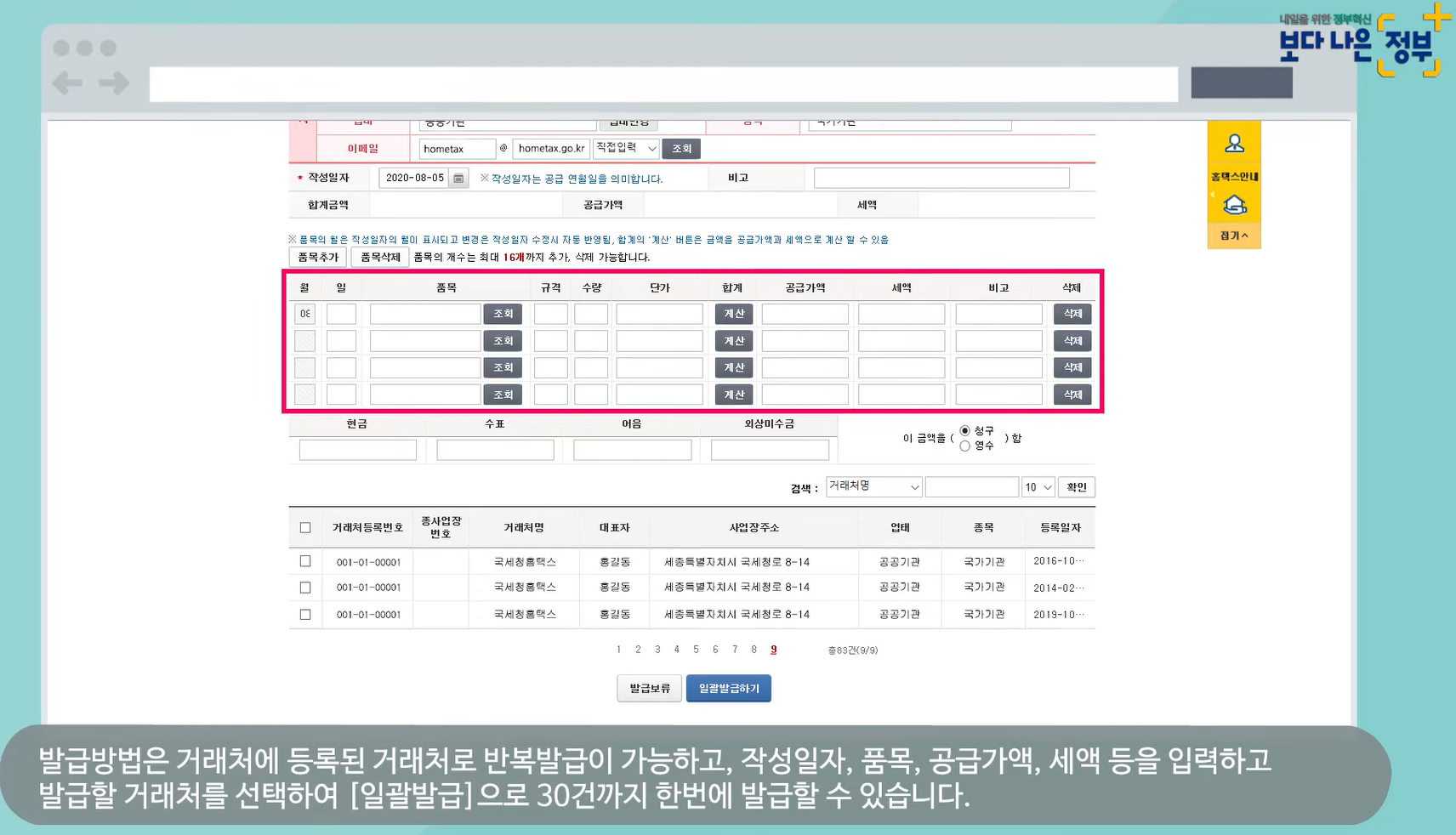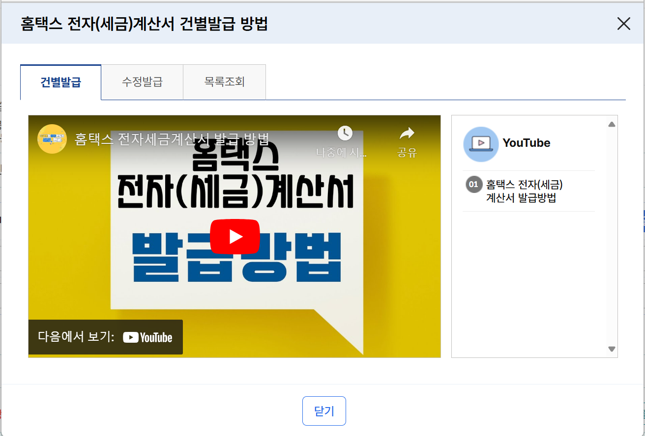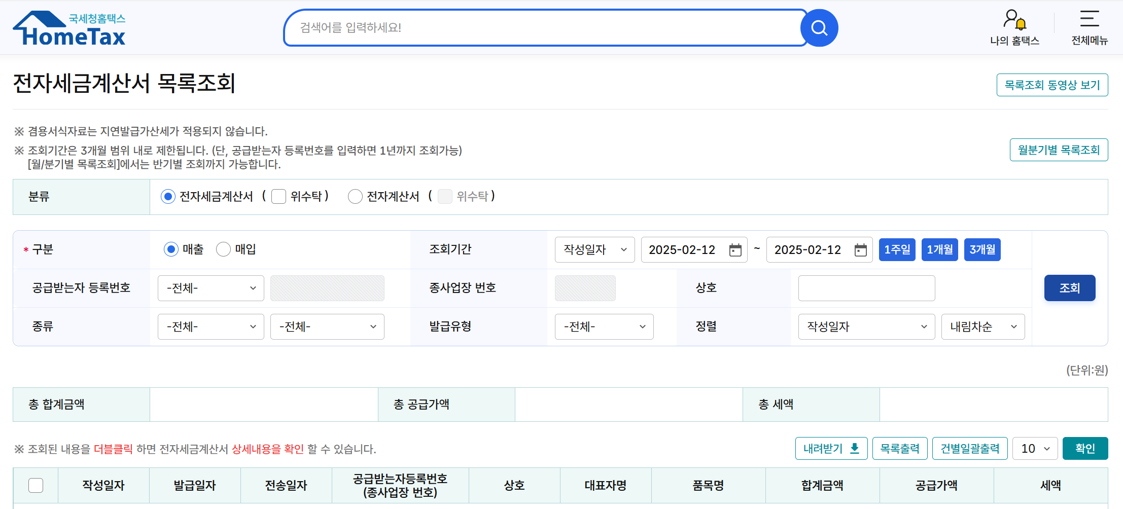 - 발급된 세금계산서는 홈택스에서 조회 가능합니다.