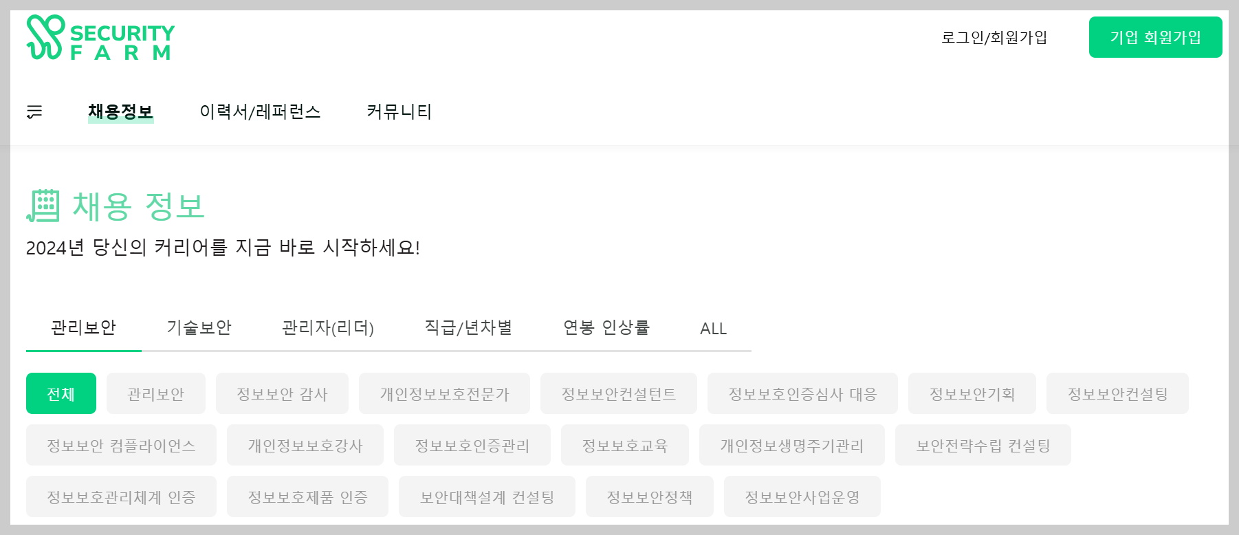 정보보호인력 매칭 플랫폼 시큐리티팜. 인턴, 신입 공고도 쉽게! 보안 개발자 및 PM까지! 정보보호에만 집중합니다.