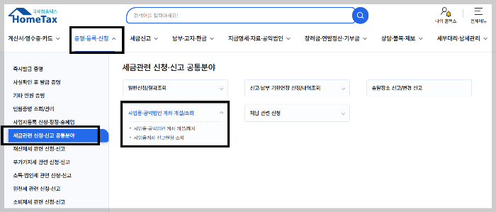 [국세증명ㆍ사업자등록 세금관련 신청/신고>세금관련 신청ㆍ신고 공통분야 >