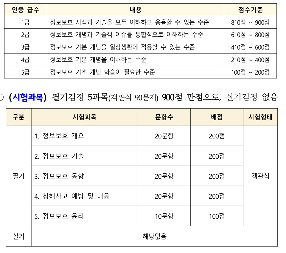 - 시험 과목: 정보보호 일반, 위험 관리, 정보보호 대책