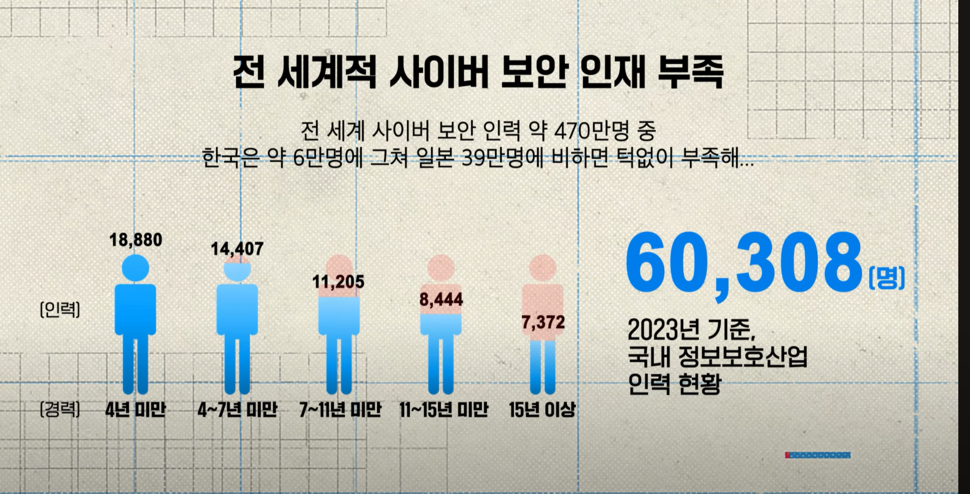 그럼에도 전세계적 사이버 보안 인재가 부족하며, 특히 한국은 일본에 비해서도 특없이 부족한 상태로 2023년 기준 단 6만명에 그쳤다고 합니다.