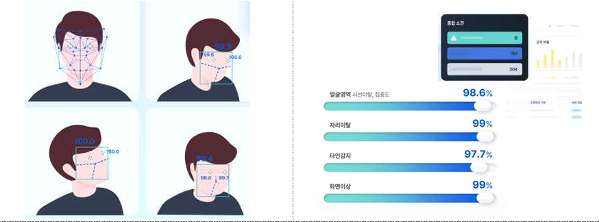 - (AI 솔루션) 수험자의 비정상적인 행동을 AI가 모니터링하며, 시험 중 AI 감독 현황을 전문 감독관이 이중 검토하여 최종 부정행위 판단