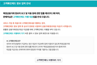 3. '고객확인제도 이행하러 가기' 버튼 클릭