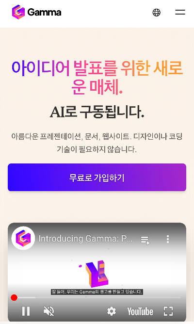 AI 기술로 아이디어를 시각적으로 구현해주는 프레젠테이션 제작 도구입니다. - 특징: 빠르고 간편하게 멋진 슬라이드를 제작 가능. - 사용 방법: 간단한 설명만 입력하면 슬라이드가 자동 생성됩니다.