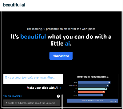 깔끔하고 세련된 디자인의 슬라이드를 몇 분 만에 제작할 수 있는 도구입니다. - 특징: 다양한 템플릿과 자동화된 디자인 옵션 제공. - 사용 방법: 원하는 템플릿을 선택하고 내용을 추가하세요. - 웹사이트: https://beautiful.ai