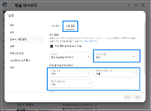 카테고리, 동영상 언어, 제목 및 설명 언어....모두 충실하게 선택해 주세요.