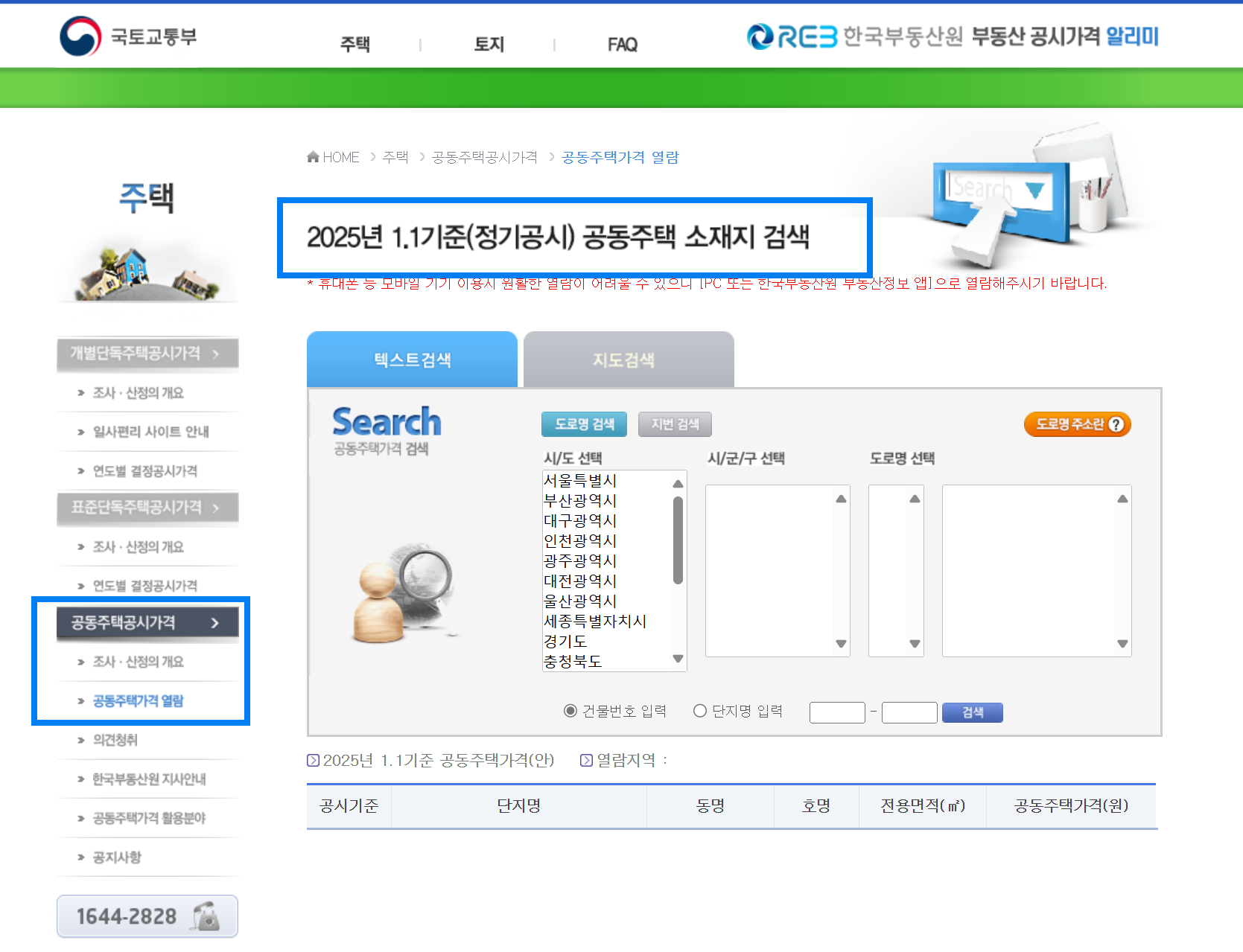 국토교통부 공시가격 알리미 홈페이지 이용시