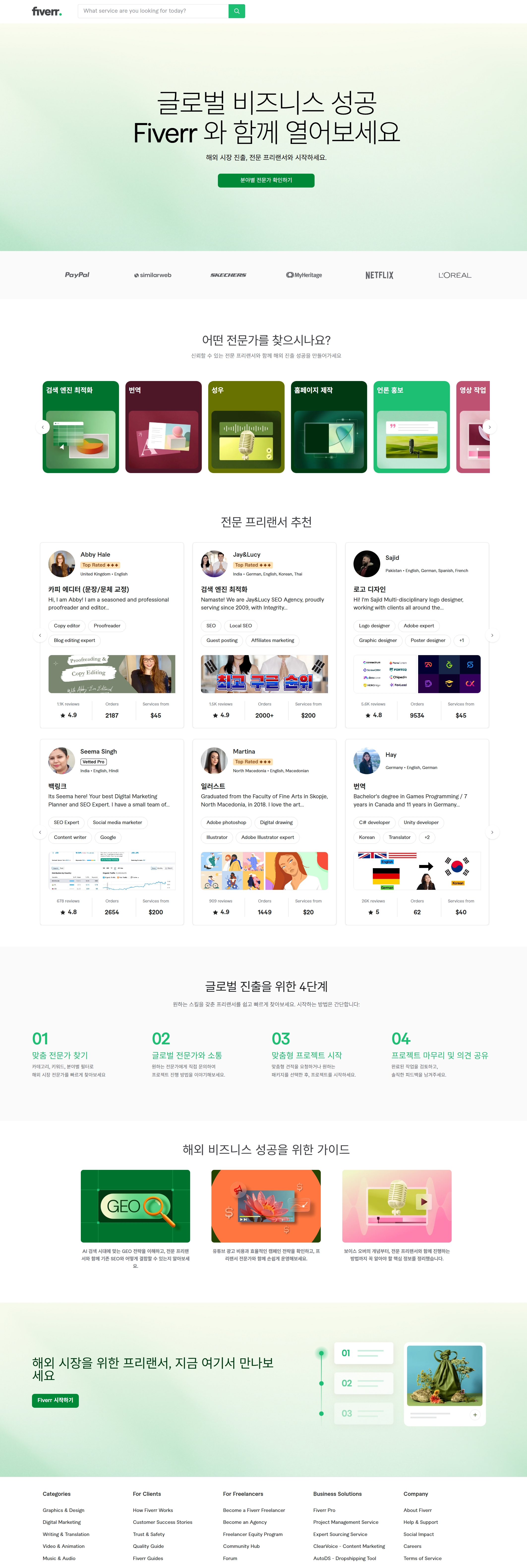 - Fiverr 또는 Upwork 판매자 계정 등록