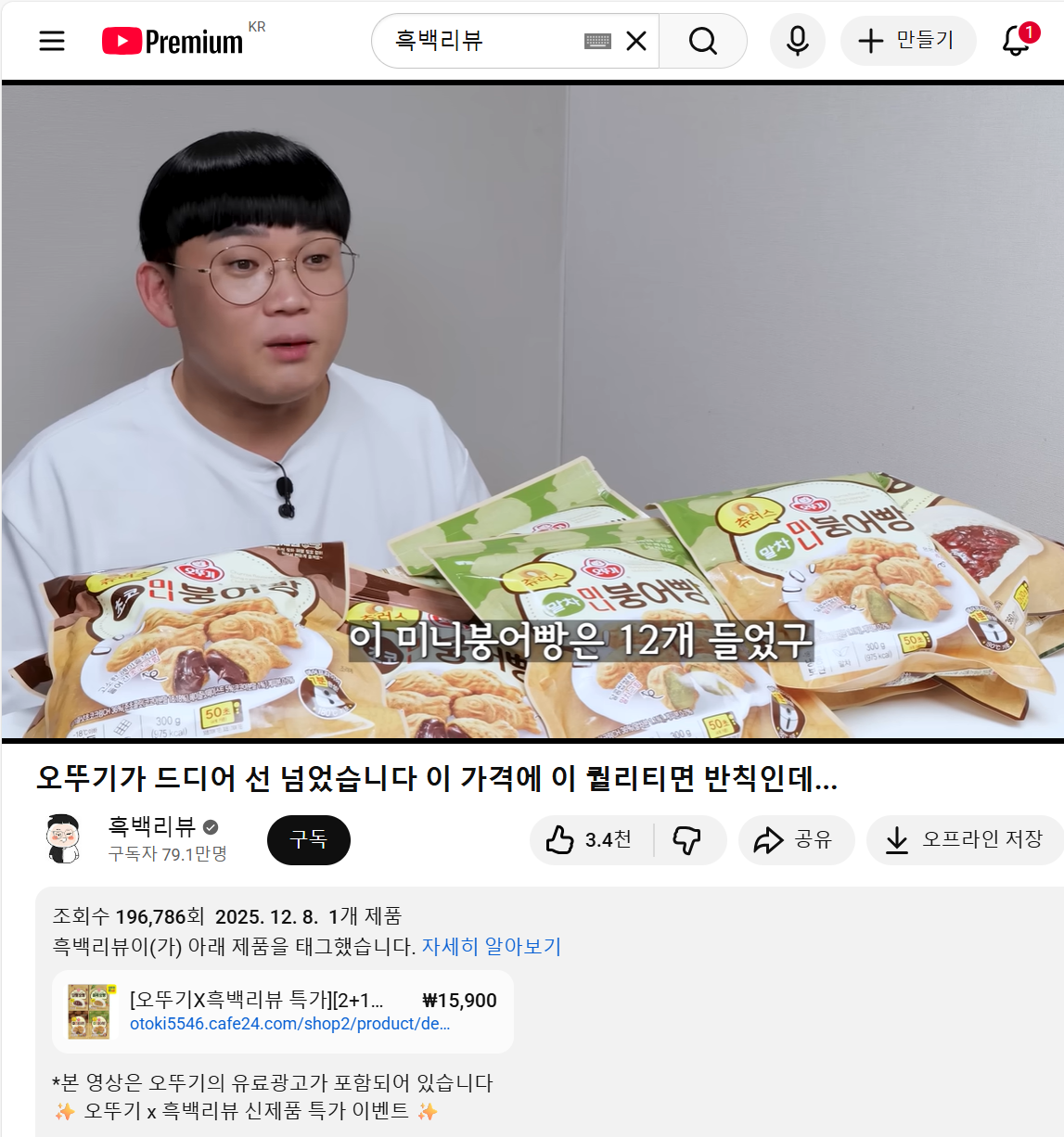 2024년 12월, 카페24는 오뚜기와 식품 리뷰 채널 '흑백리뷰'(구독자 78만)의 협업을 지원했습니다. 흑백리뷰는 영상에서 오뚜기 제품을 리뷰하며 상품을 태그했고, 시청자들은 영상을 보면서 즉시 구매할 수 있었습니다.