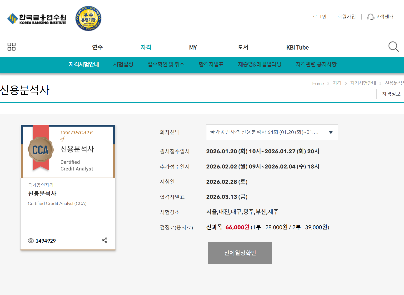 2026년 제64회 신용분석사 시험 일정 (확정)