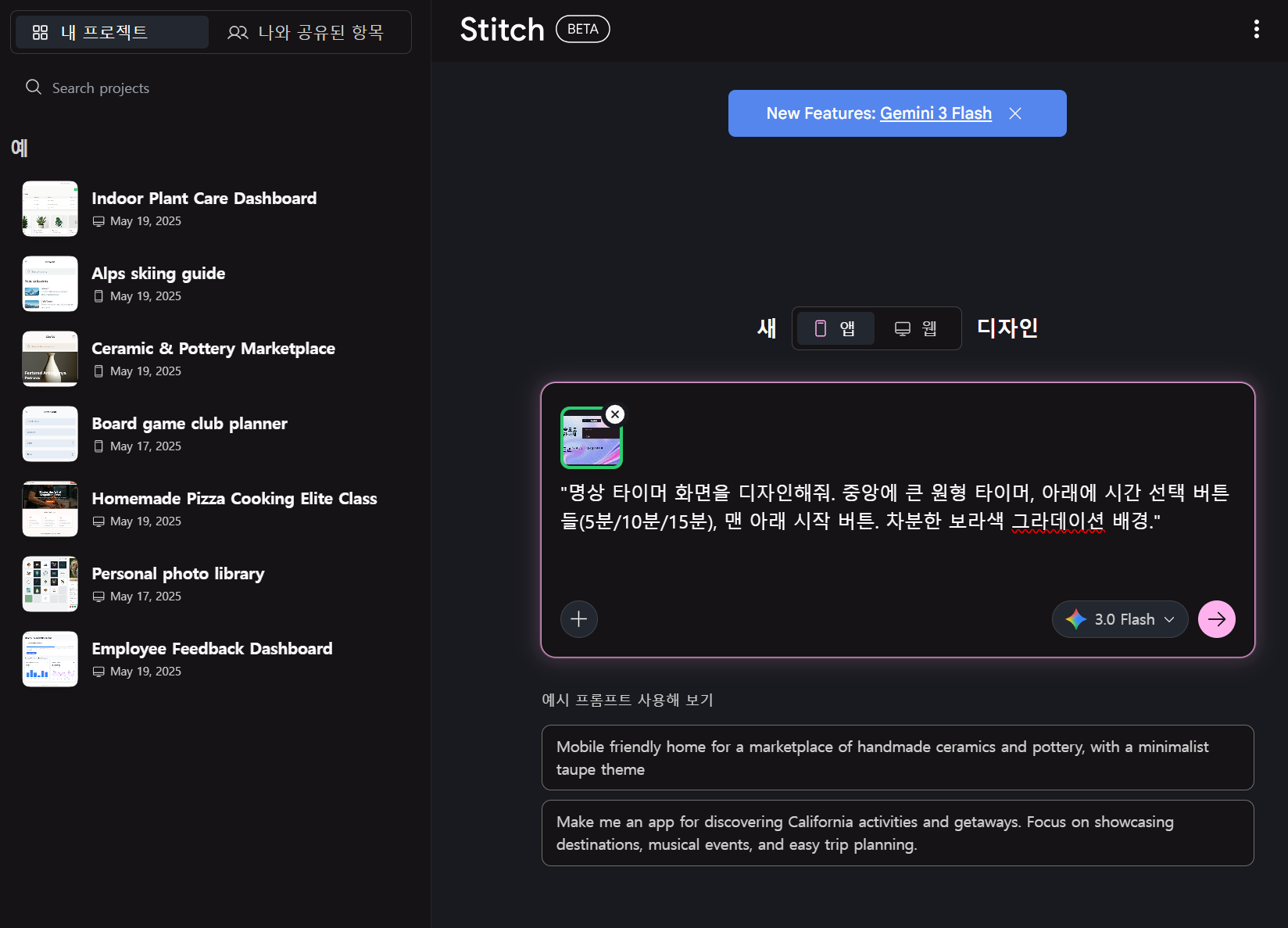 하지만 Stitch는 이 과정을 자동화하여 누구나 몇 분 만에 아이디어를 실제 앱으로 구현할 수 있게 만들었습니다.