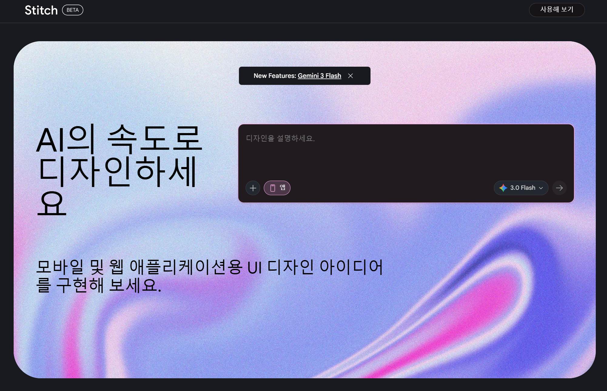 Stitch는 Gemini 앱과는 별도로 운영되는 구글의 전용 디자인 도구입니다.