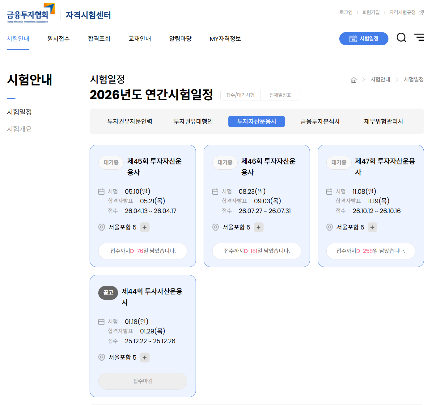 2026년 투자자산운용사 시험일정 (금융투자협회 공식)