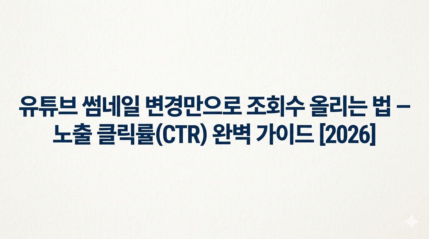 이 글에서는 유튜브 노출 클릭률(CTR)의 기준, 썸네일 변경의 효과, 그리고 실전에서 바로 적용할 수 있는 전략을 정리했습니다.