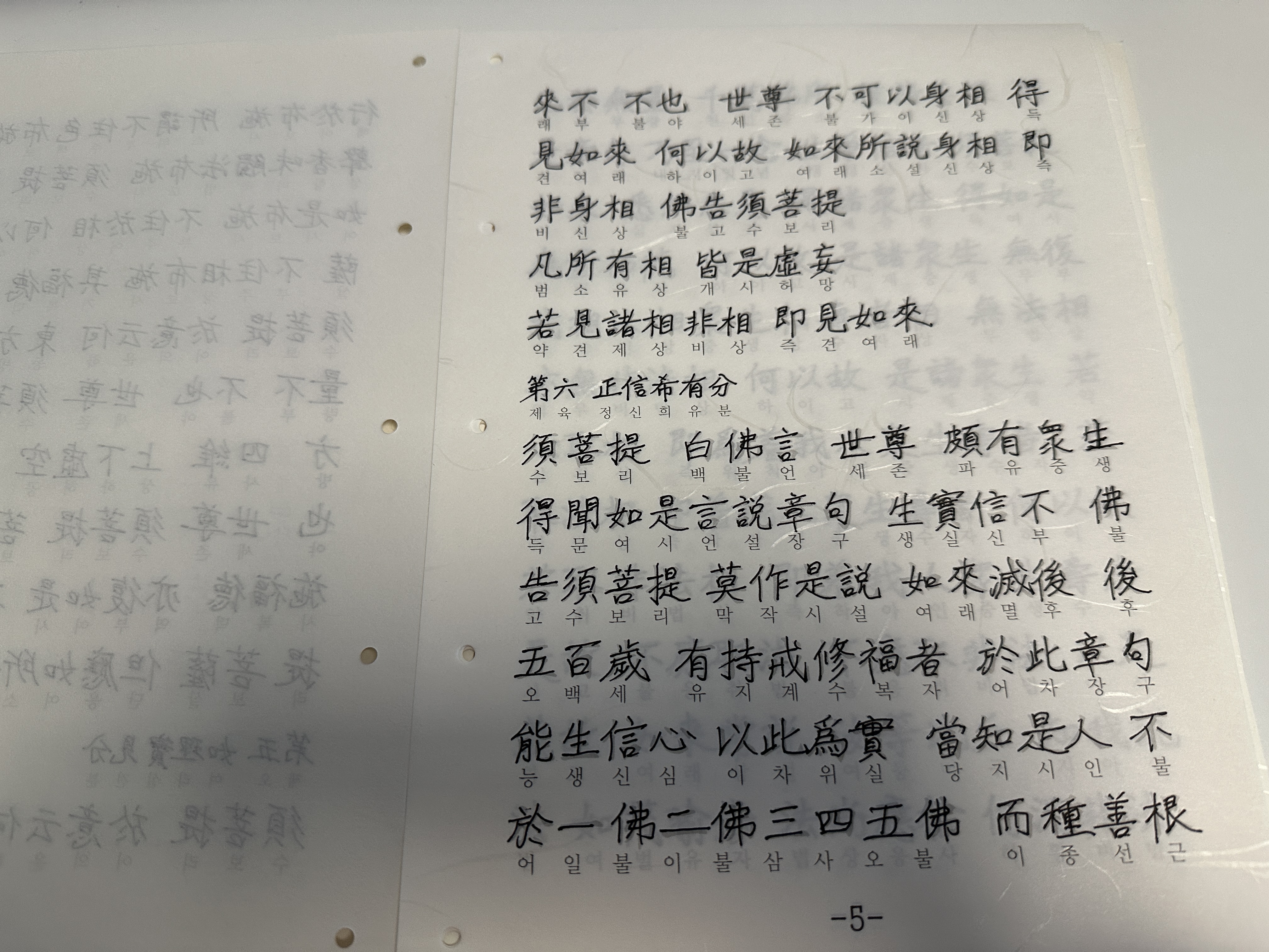 오늘은 제5장 여리실견분과 제6장 정신희유분 을 필사했다.
