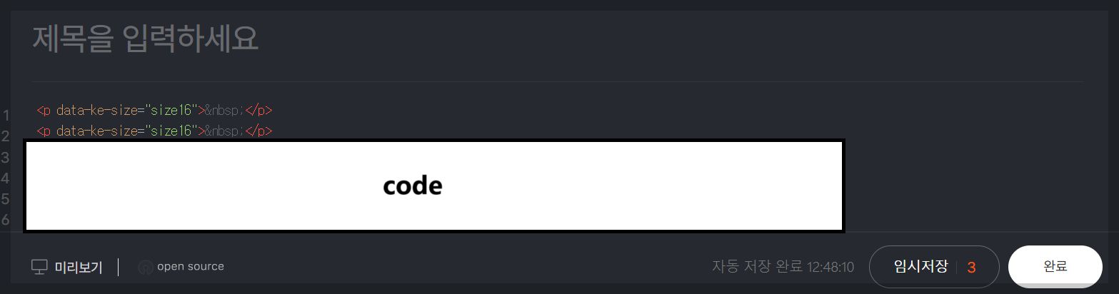 복사한 html 코드를 티스토리 글쓰기 - html 버전에서 붙여넣기 해 줍니다.