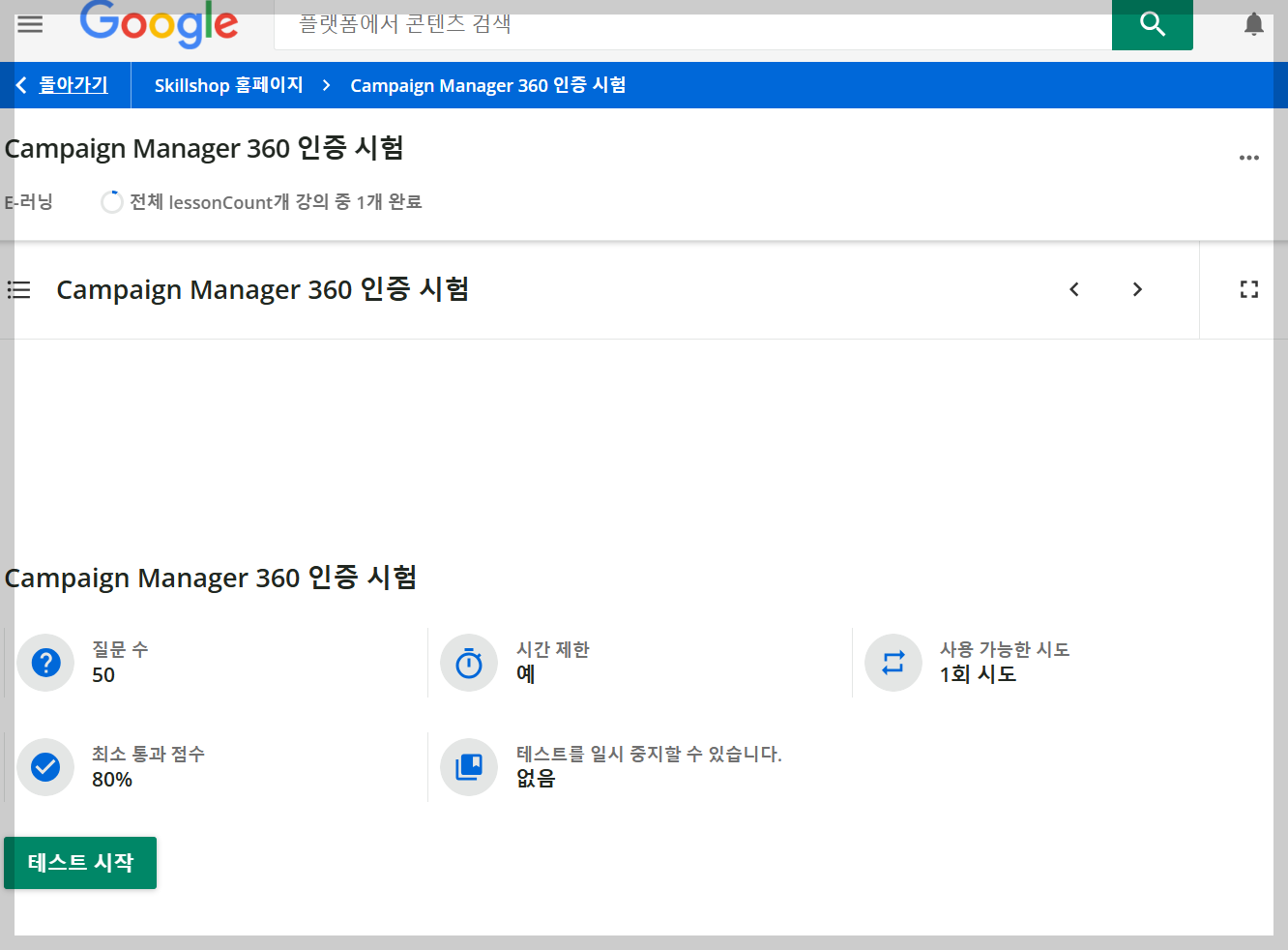 Campaign Manager 360(CM360) 은 구글 스킬샵에 접속하면 바로 나옵니다.