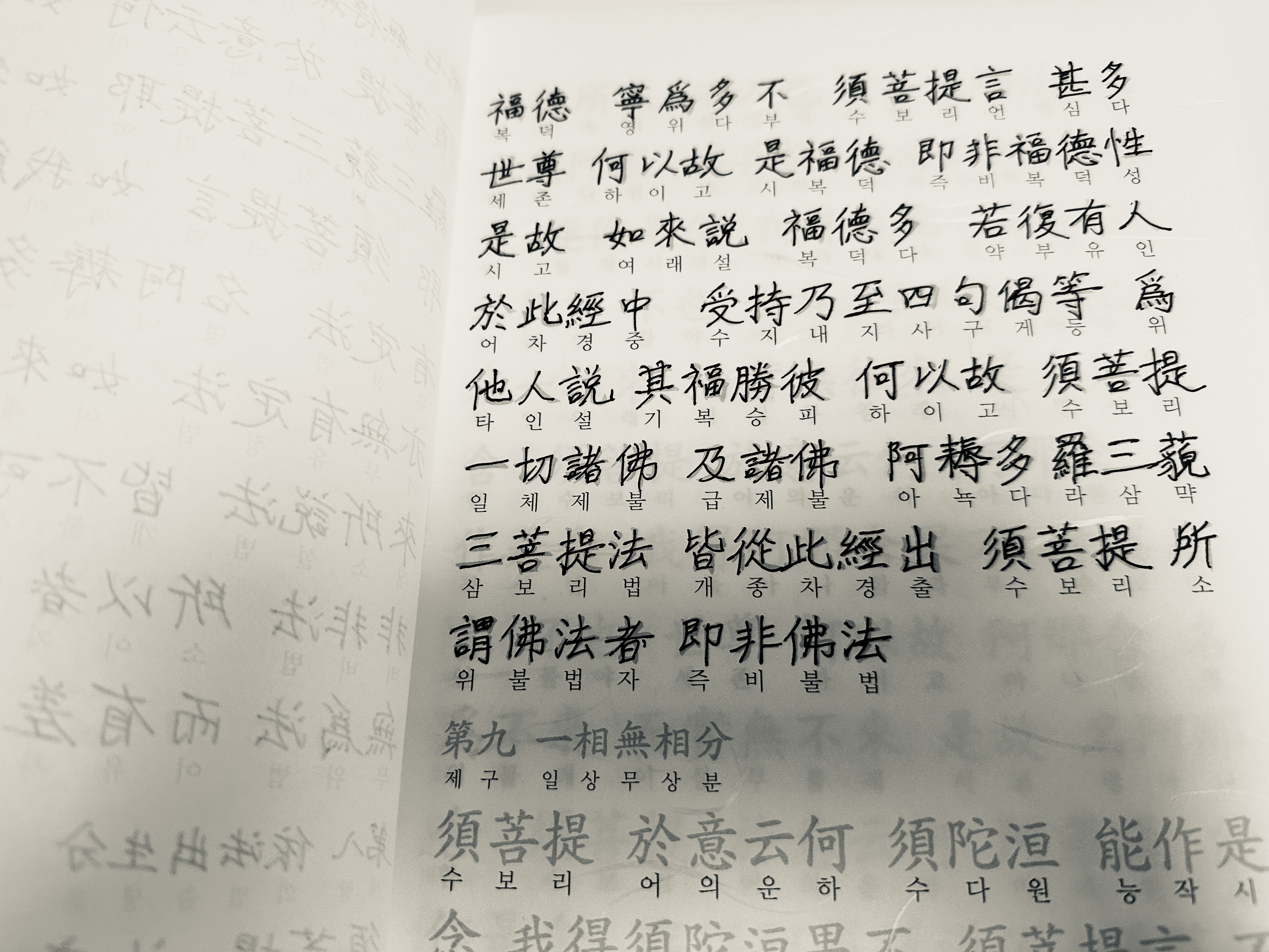 오늘은 금강경 제7장 무득무설분과 제8장 의법출생분을 필사했다.