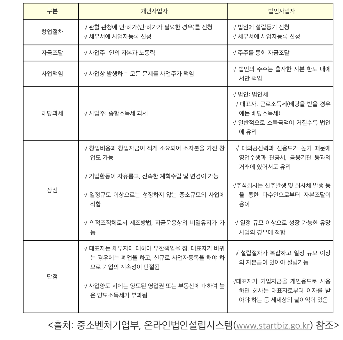 (중소벤처기업부, 「창업절차메뉴얼」, 24면).