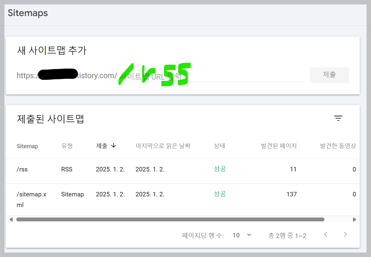 구글 서치 콘솔에 진입했다면 ? sitemap 과 rss를 등록