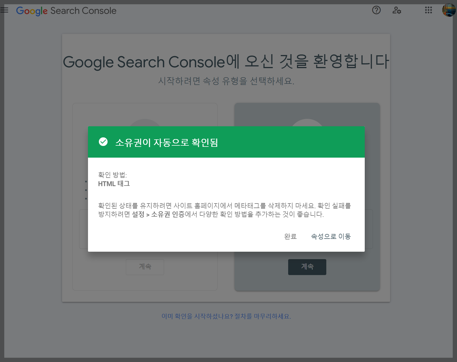 (메타 태그 등록, HTML 입력을 통한) 소유권 확인