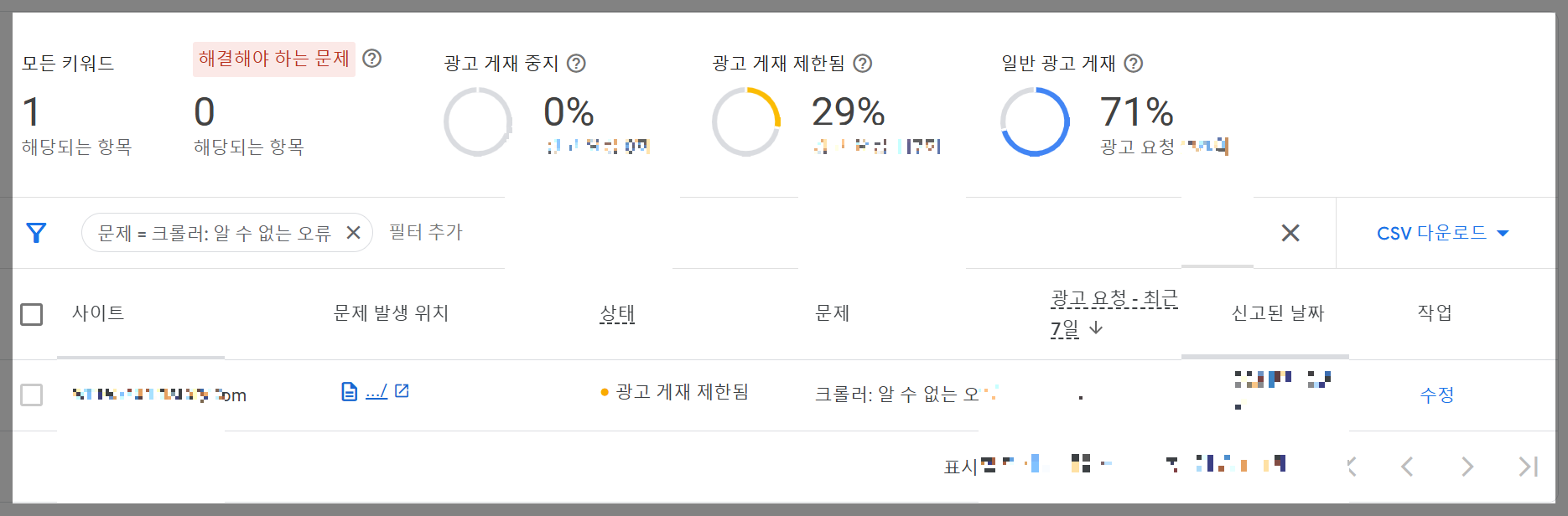 광고 크롤러 오류