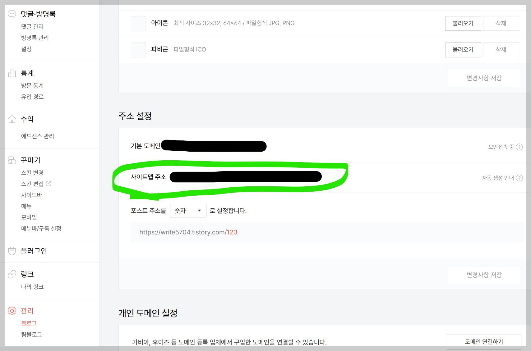 티스토리 기본 도메인(tistory.com)을 사용하는 경우: