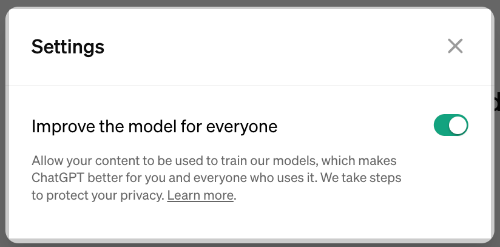 OpenAI에서는 사용자가 제공한 데이터를 학습 목적으로 사용하지 않도록 설정할 수 있습니다.