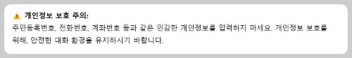 ChatGPT를 사용하면서 이력사항을 입력했을 때 민감한 개인정보를 넣지 말라는 주의 문구가 떴던 이유는 개인정보 보호와 보안을 위한 조치 때문이에요. 이런 문구는 OpenAI와 같은 서비스가 사용자의 개인 정보를 안전하게 관리하기 위해 마련한 표준 정책에 해당합니다.