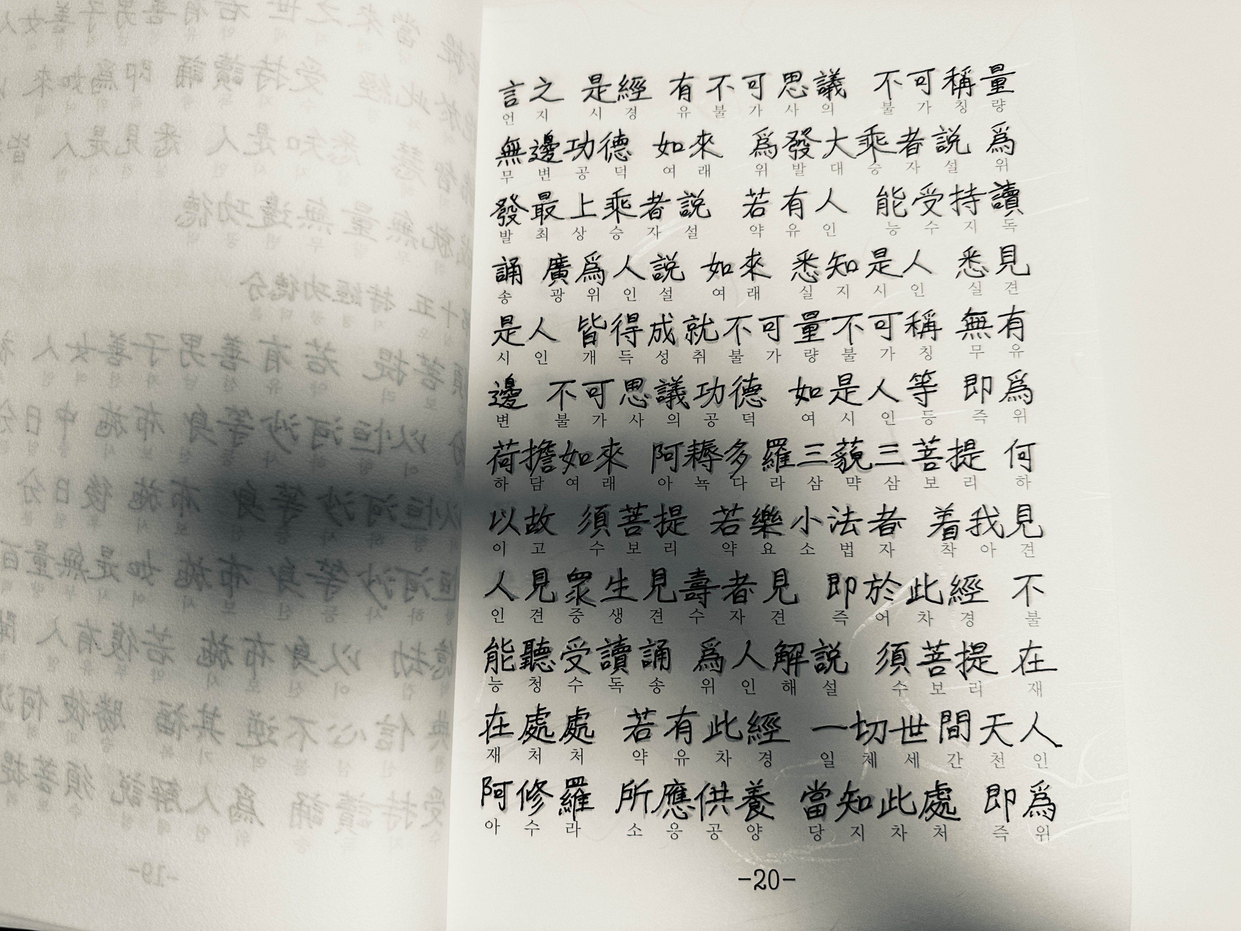 오늘은 금강경 중에서도 가장 긴 장인 제14장과 제15장을 필사했다.