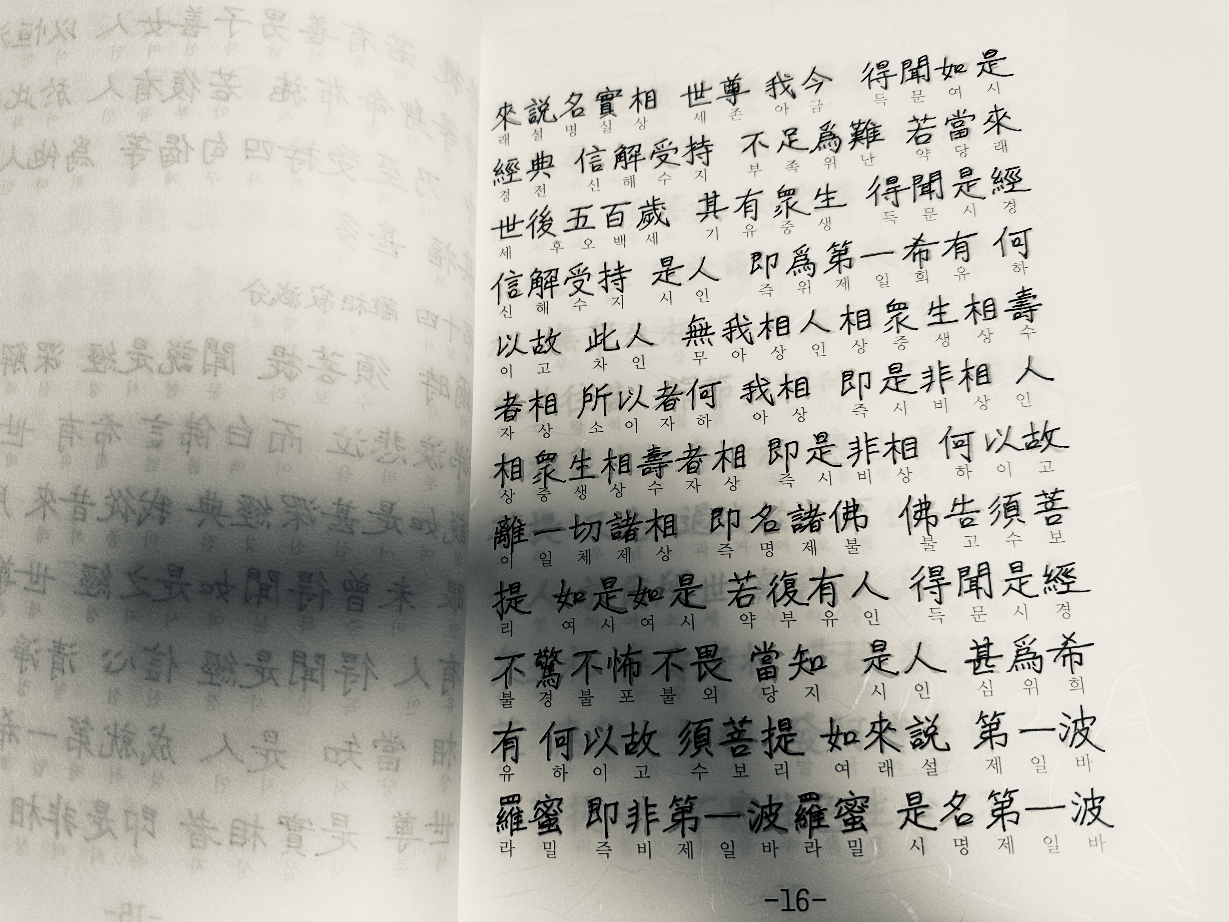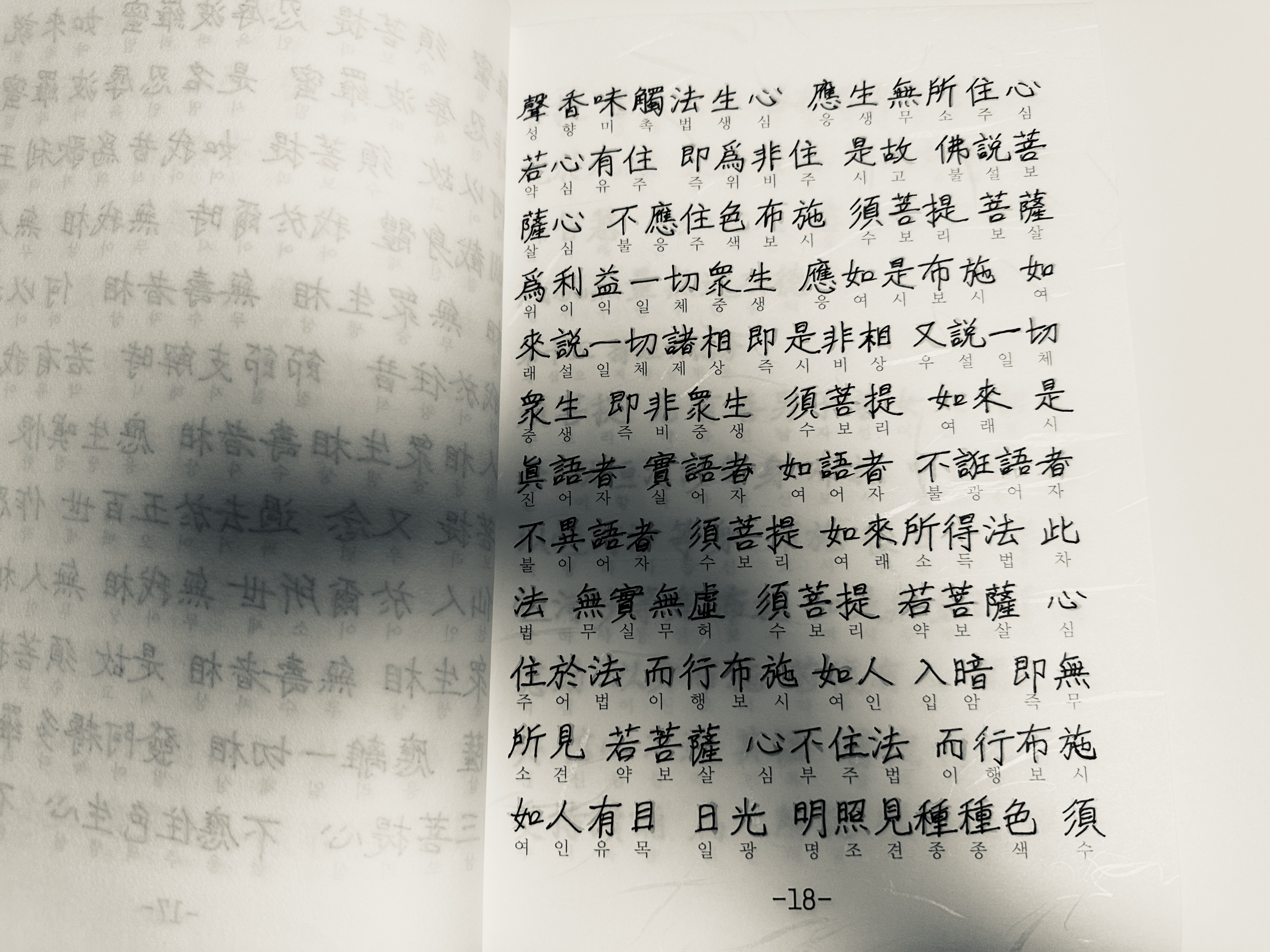 | 24-11-16(토) 금강경 제 18~19장 필사 (0) | 2024.11.16 |