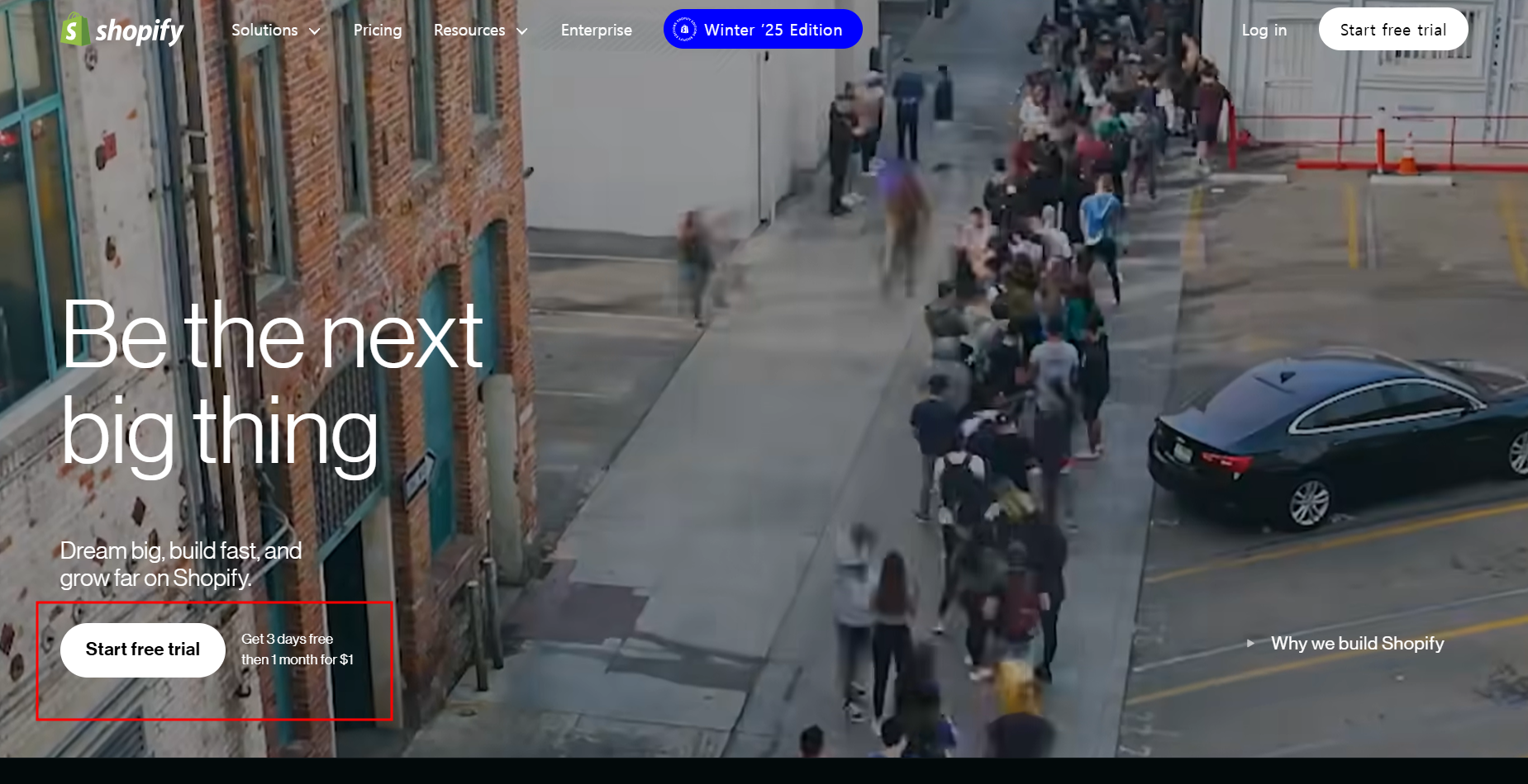 Head over to Shopify’s website and click 'Start Free Trial.' Enter your email, create a password, and choose a unique store name.