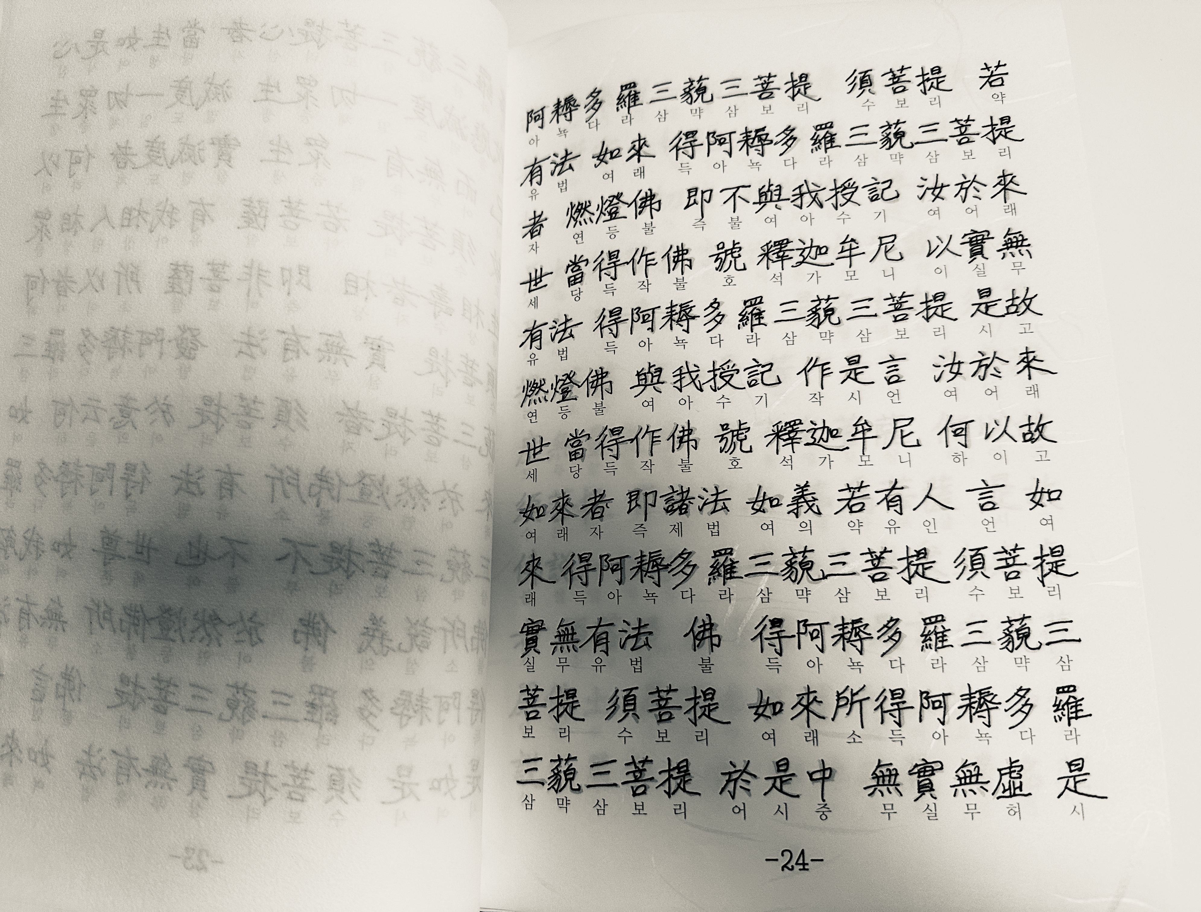 | 24-11-17(일) 금강경 제20~23장 필사 (0) | 2024.11.17 |
